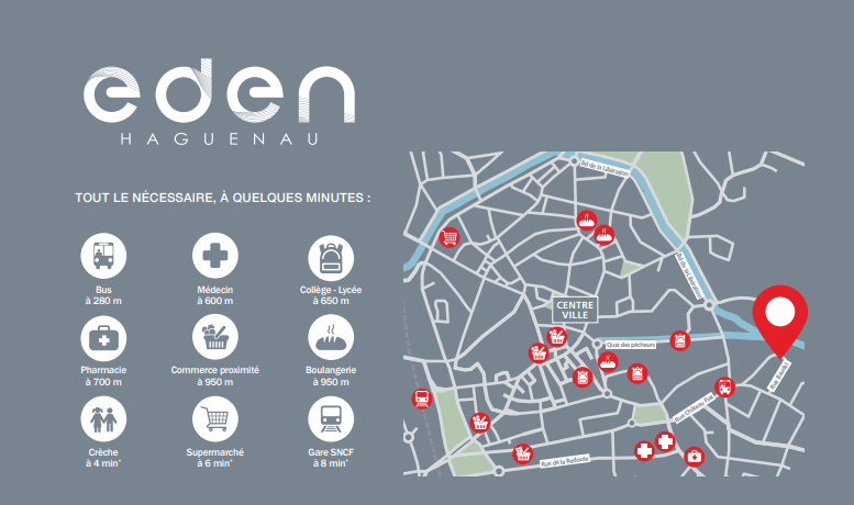 Offre limitée dans le temps, applicable pour la signature des 6 premiers contrats de réservation portant sur un logement du programme immobilier Eden à Haguenau. La remise «Frais de notaire offerts» correspond aux frais d’acquisition et émoluments du notaire (hors frais de financement, de garanties et de mise en copropriété). Cette valeur pourra être calculée lors du contrat de réservation. Renseignements en agence.